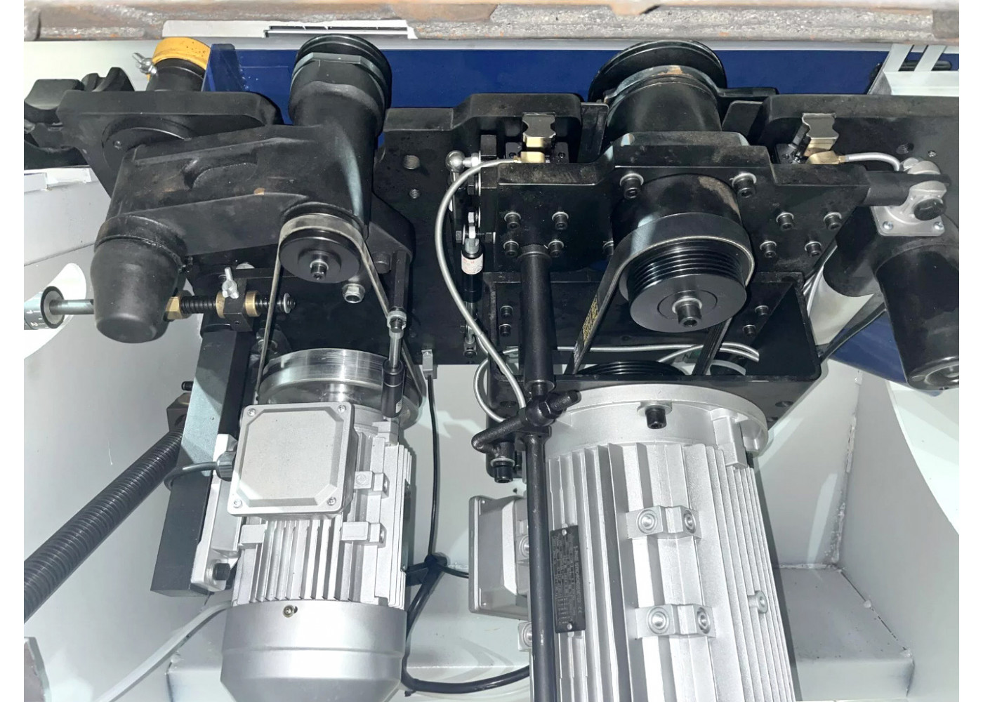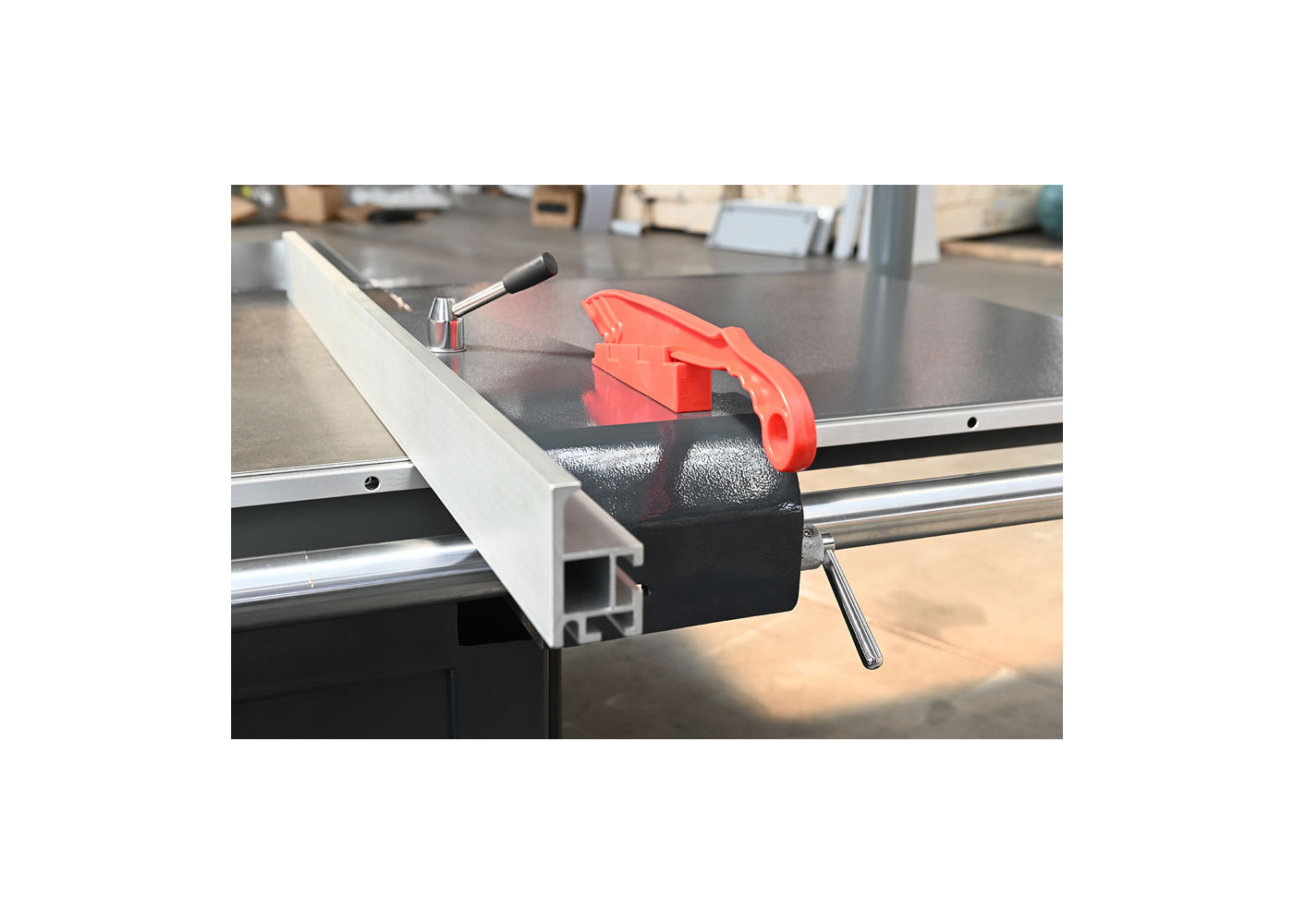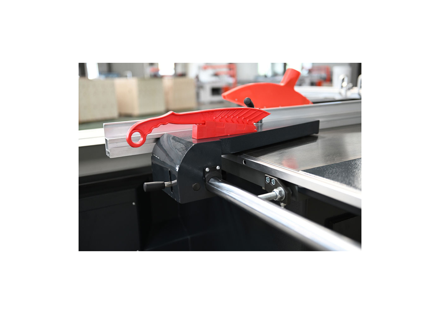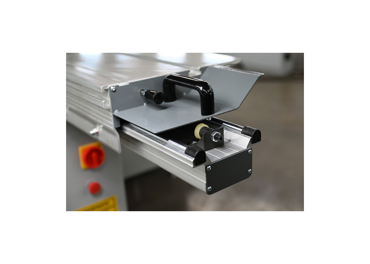Escairadora professional amb carro de 3200 mm. serra inclinable, motor principal de 7,5 cv. i incisor amb motor independent d'1 CV. a 380 Trifàssica. Capota d'aspiració penjada. Es subministra amb un joc de serra i incisor Freud.