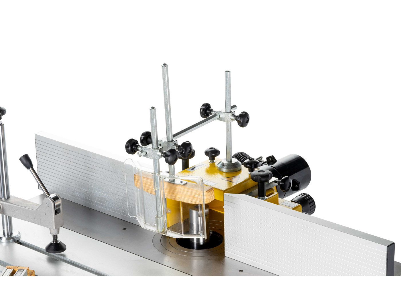 Material inclòs: Carro alumini, guia telescòpica amb 2 topalls, guia d'engonals, prensor excèntric, protector de la tupi.