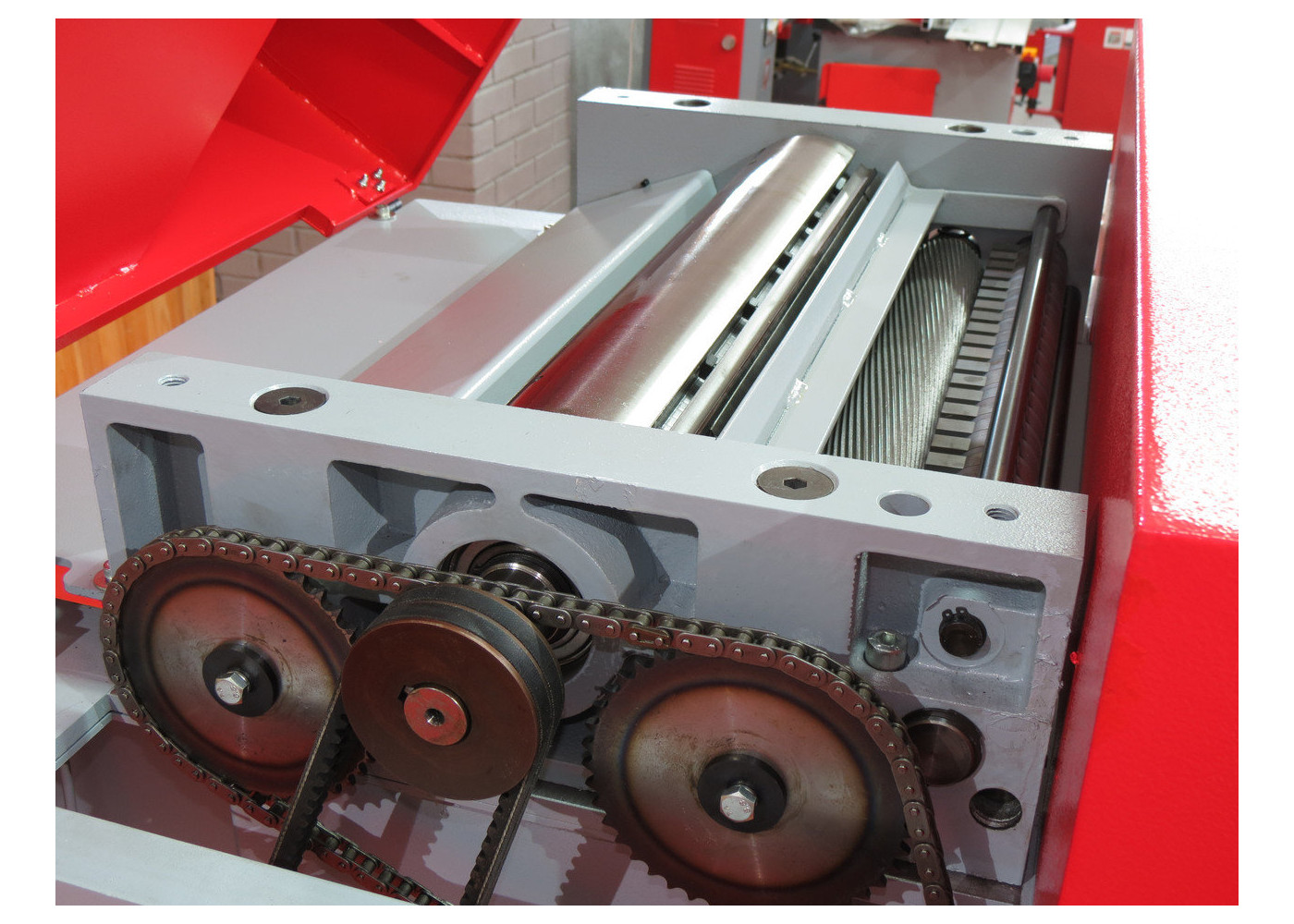 Alimentación de los rodillos de arrastre por cadena.