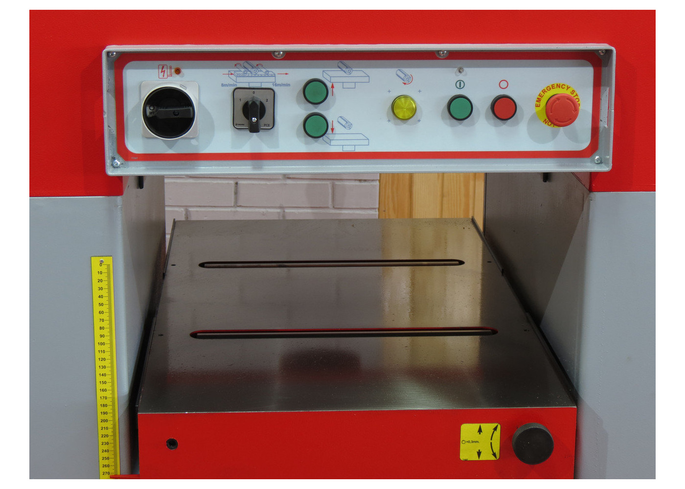 2 rodillos anti-fricción ajustables en la mesa para un mejor desplazamiento de la pieza a regruesar.